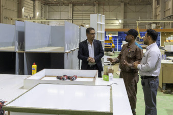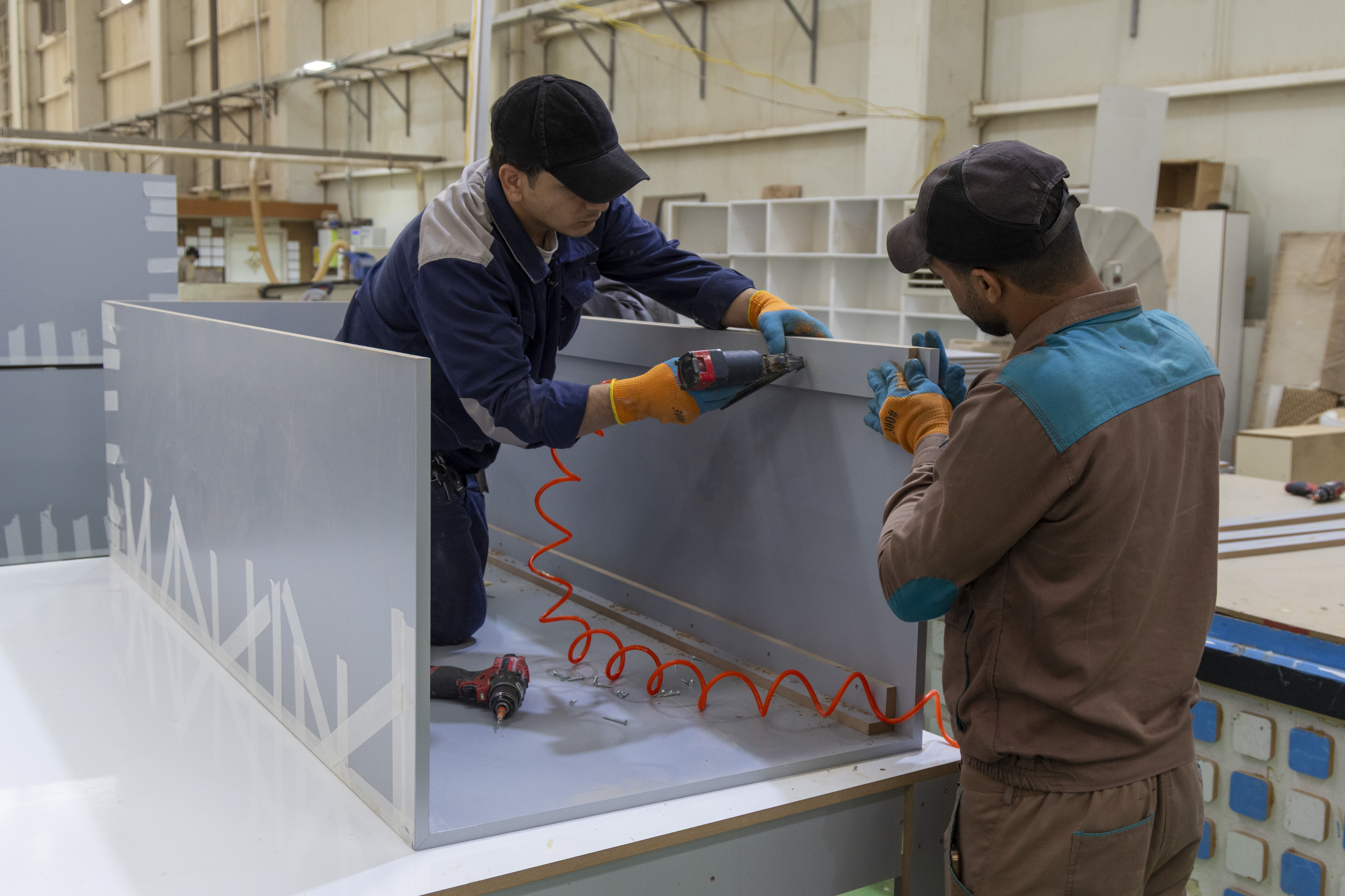 من جهته، أوضح مسؤولُ وحدة الـ MDF في قسم الصناعات والحرف الفنّية، السيد خالد عبد زيد، أن "تصميم الفاترينات تمّ بواسطة مصمّمي القسم، وبدأت ملاكاتنا العمل باستخدام أفضل المواد وفق المواصفات القياسية للمتاحف، مع الالتزام بالجوانب الفنية كافة".