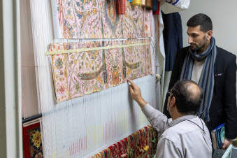 زار وفد قسم متحف الكفيل للنفائس والمخطوطات التابع للعتبة العباسية المقدسة ورش السجاد اليدوي في العاصمة الإيرانية طهران للاطّلاع على أساليب الصناعة التقليدية وتقنيات الإنتاج المتوارثة عَبرَ الأجيال.