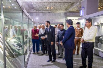 وأجرى الوفد جولة في قاعة العرض المتحفي للاطلاع على النفائس والقطع التاريخية النادرة.