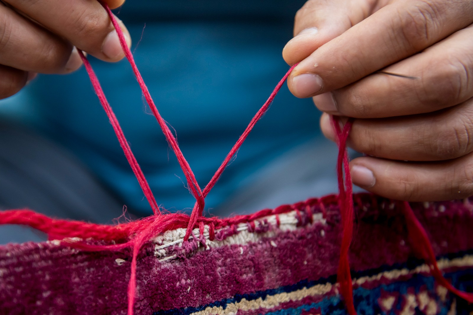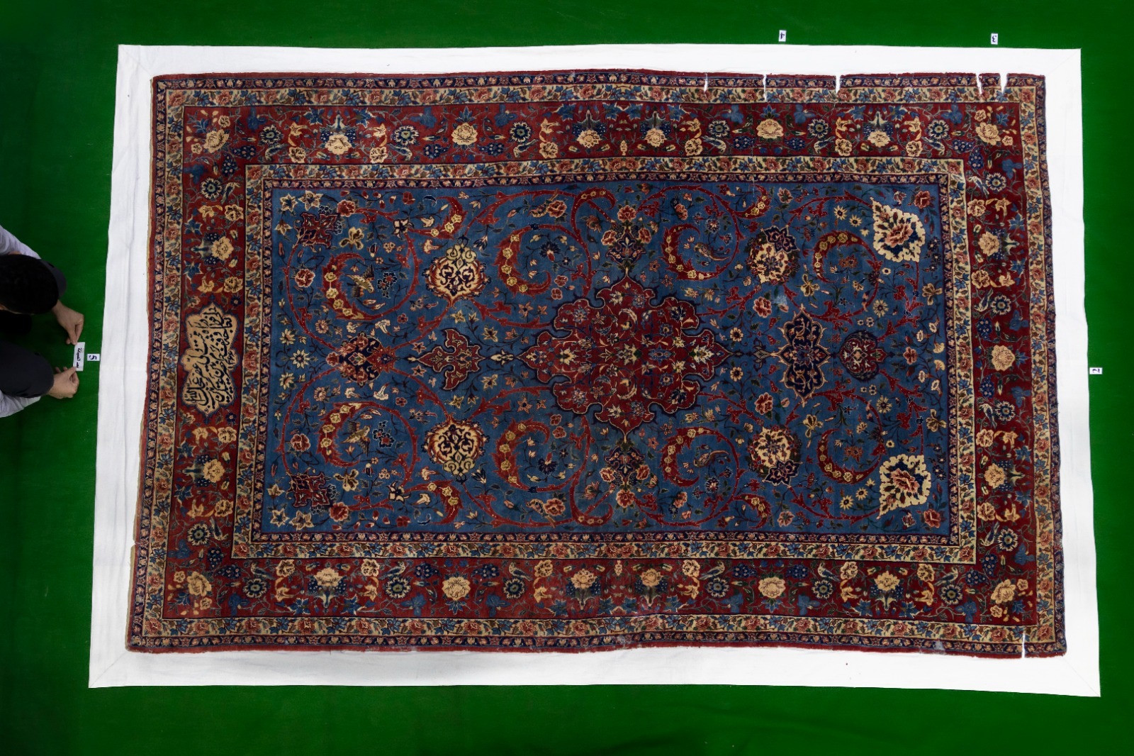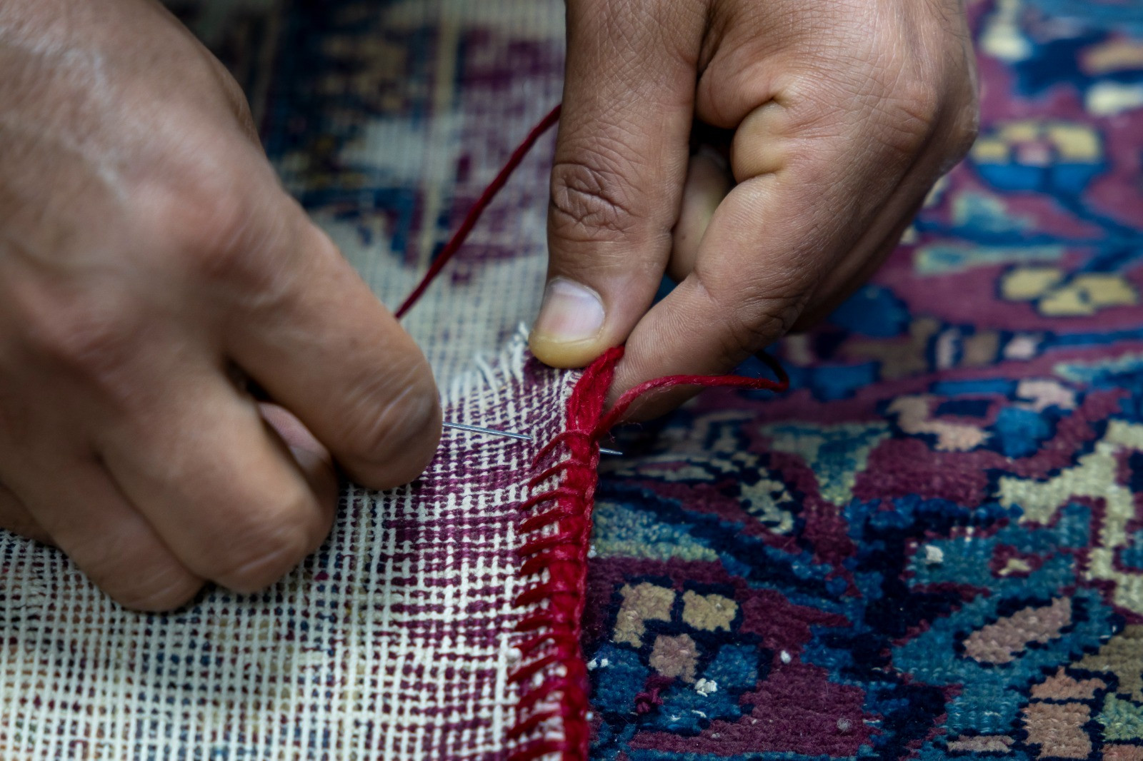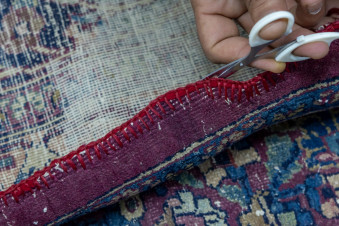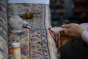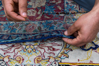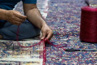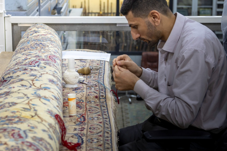 وأشار إلى أنّ “بعض القطع تتطلب تدعيمًا بقماش الكتان للحفاظ على بنيتها، فيما تحتاج أخرى إلى تثبيت الأضرار باستخدام خيوط تتناسب مع نسيج السجادة، بما يضمن الحفاظ على أصالتها ومنع تفاقم التلف”.