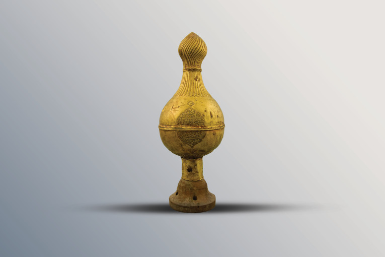 وتتمثّل القطعة بأحد الأجزاء التي تزين المرقد الشريف، ومصنوعة من الذهب، وقاعدتها من الخشب، وصيغت على هيئة منارة، وزُينت بزخارف هندسية ونباتية دقيقة تبرز مهارة الصانع في تنفيذ تفاصيلها الفنية.