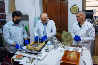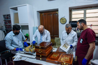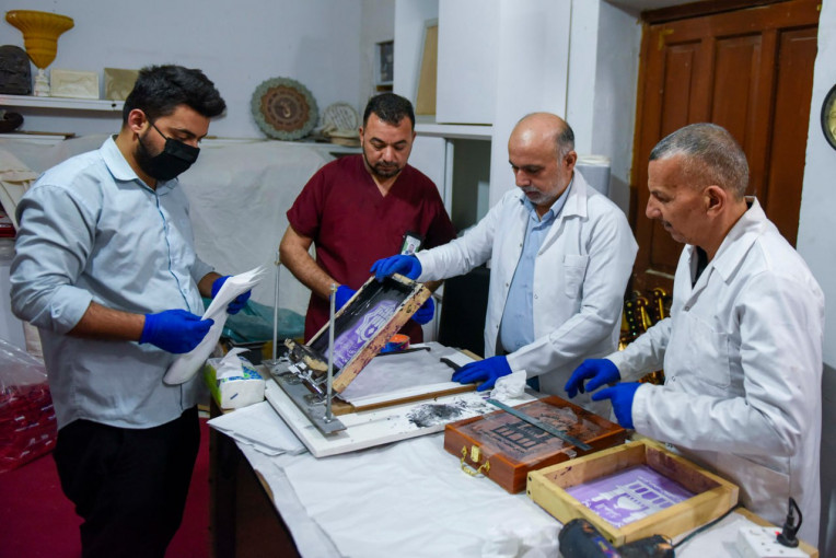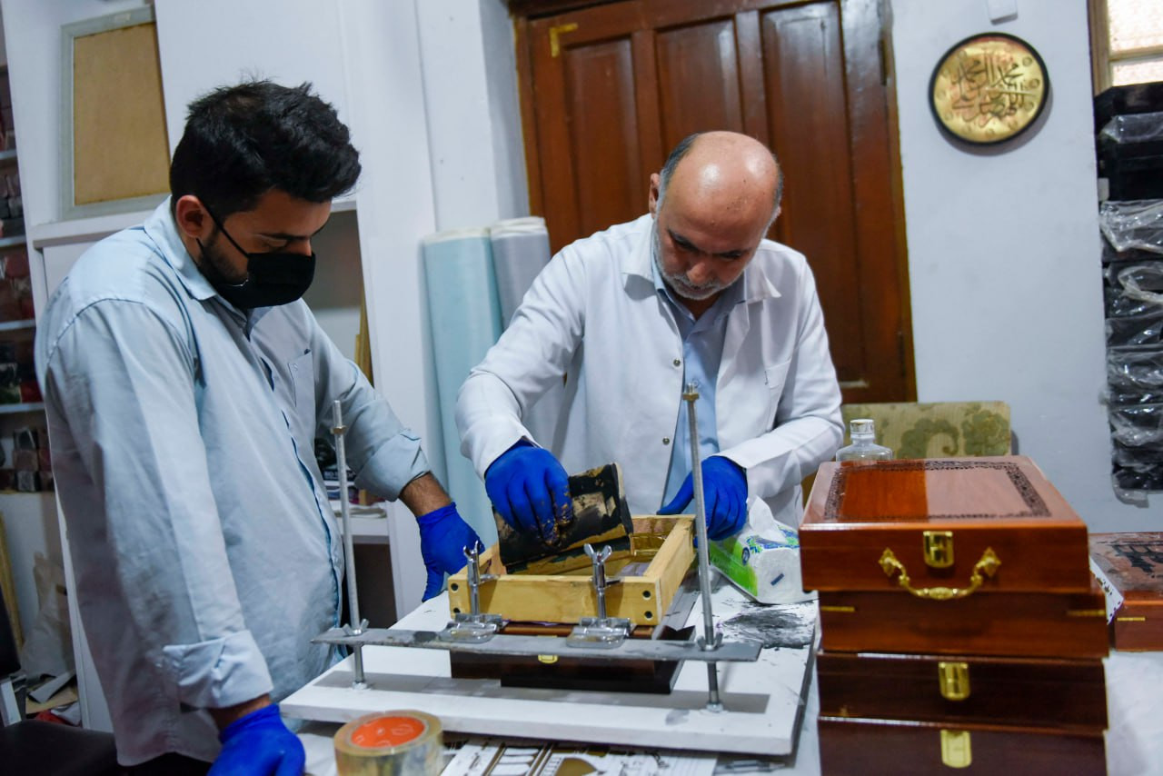 قدم رئيس قسم متحف الكفيل للنفائس والمخطوطات الأستاذ صادق لازم الزيدي ورشة تدريبية لمنتسبي متحف الكفيل في كيفية الطباعة بالشاشة الحريرية ( السلك سكرين ) على علب الهدايا و أكياس البلاستيك و الأقمشة المتنوعة .