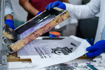 وتتكون عملية الـطباعة من إطار خشبي يسمى بـ ( الشبلونة ) ثبتت عليه قطعة من قماش الحرير يتم طلائها بالمادة الحساسة ويعرض لضوء قوي بعد طباعة الفلم المراد طباعته .