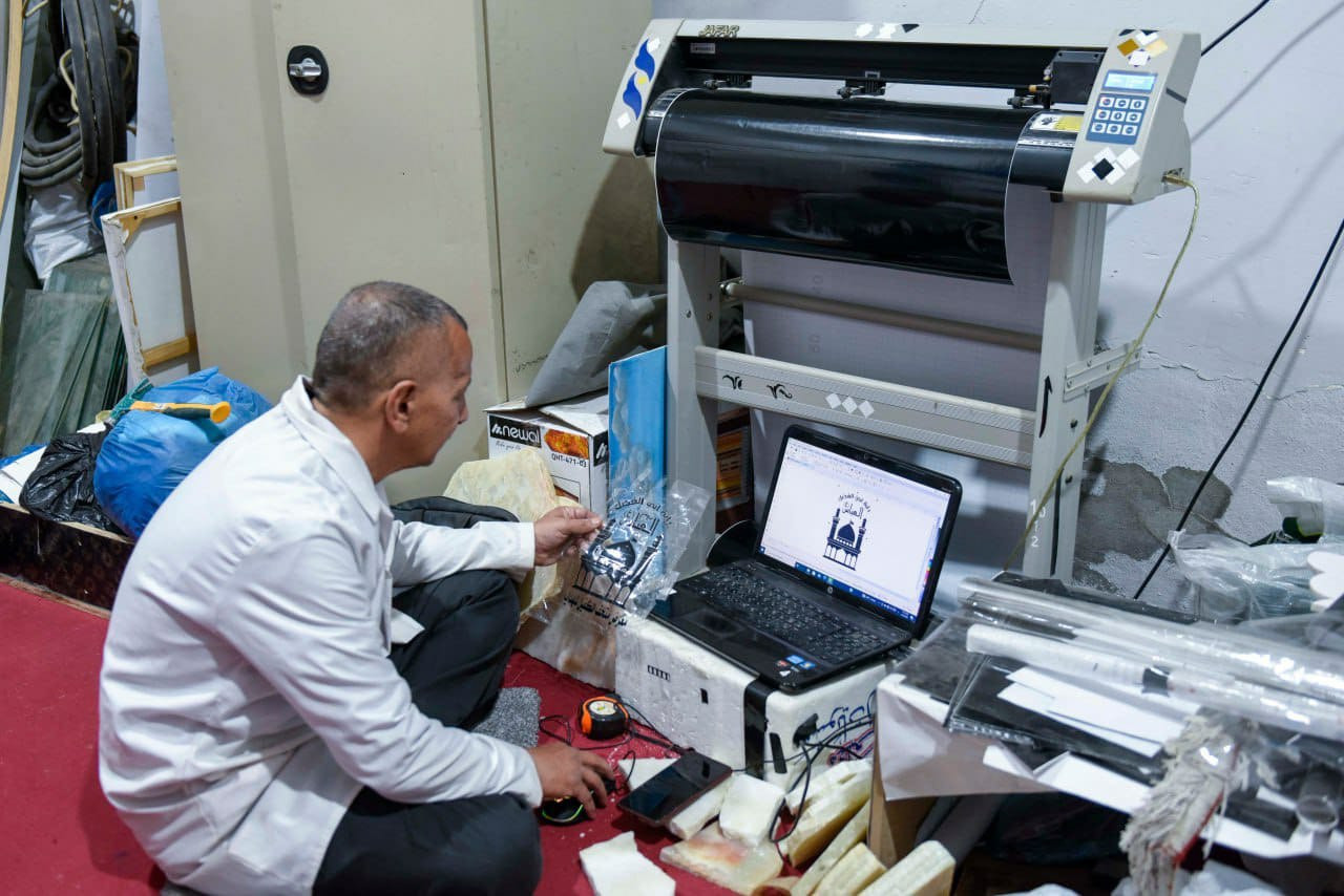 بعد ذلك تأتي مرحلة إستخدام الجهاز اليدوي (النرمادة) لطباعة الشكل النهائي .