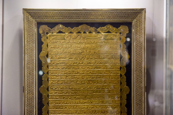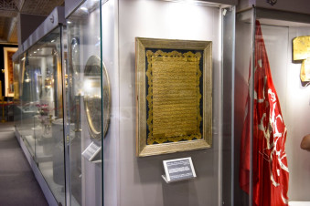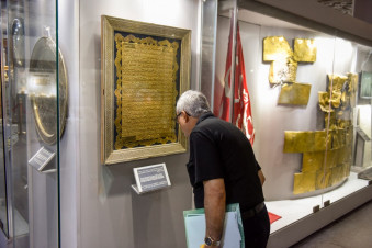 في قاعة عرض نفائس متحف الكفيل للنفائس والمخطوطات التابع للعتبة العباسية المقدسة وتحديدًا في زاوية يغمرها الجمال الفني والروحي ، نجد زيارة المولى أبي الفضل العباس عليه السلام وهي إحدى اجمل القطع المتحفية التي تُجسِّد عُمق الولاء لراية الطف.