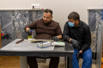 من جانبه تحدث مسؤول شعبة المختبر السيد سجاد حسن بشأن هذا التعاون قائلاً : ( باشرنا هذا اليوم في العتبة العسكرية المقدسة لصيانة وترميم المقتنيات المتحفية واتخاذ الاجراءات اللازمة في كيفية الحفاظ عليها بعد اعمال الصيانة واثناء الخزن ، قدمنا في زيارتنا هذه جانبين عمليين الجانب الاول كان عن اولويات الترميم والطرق التي يجب استخدامها في كل نوع من المواد والجانب الثاني كان حول كيفية الصيانة الفعلية للقطع من حيث الاستلام والتصوير قبل صيانة المادة بالاضافة الى كيفية اتخاذ اجراءات الوقاية الشخصية للشخص المسؤول عن هذه العمليات ).