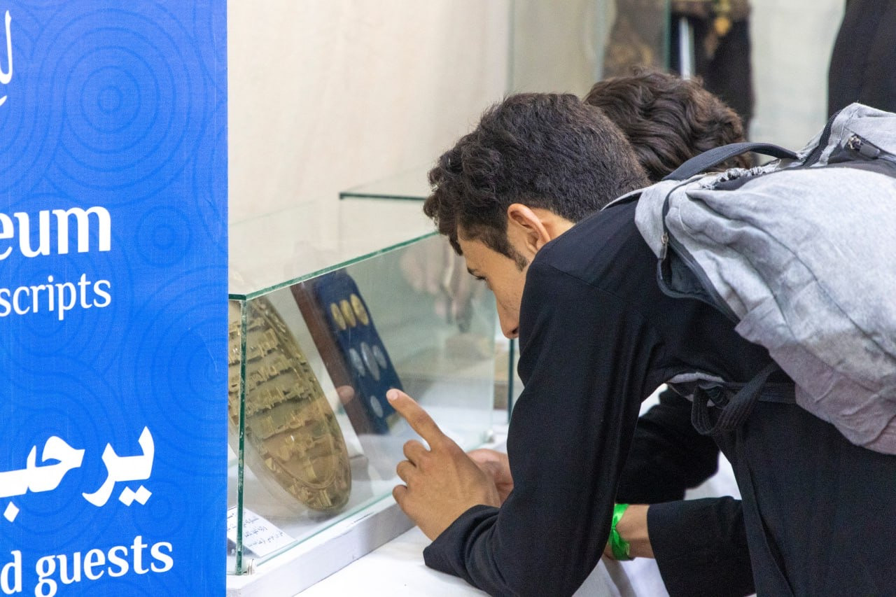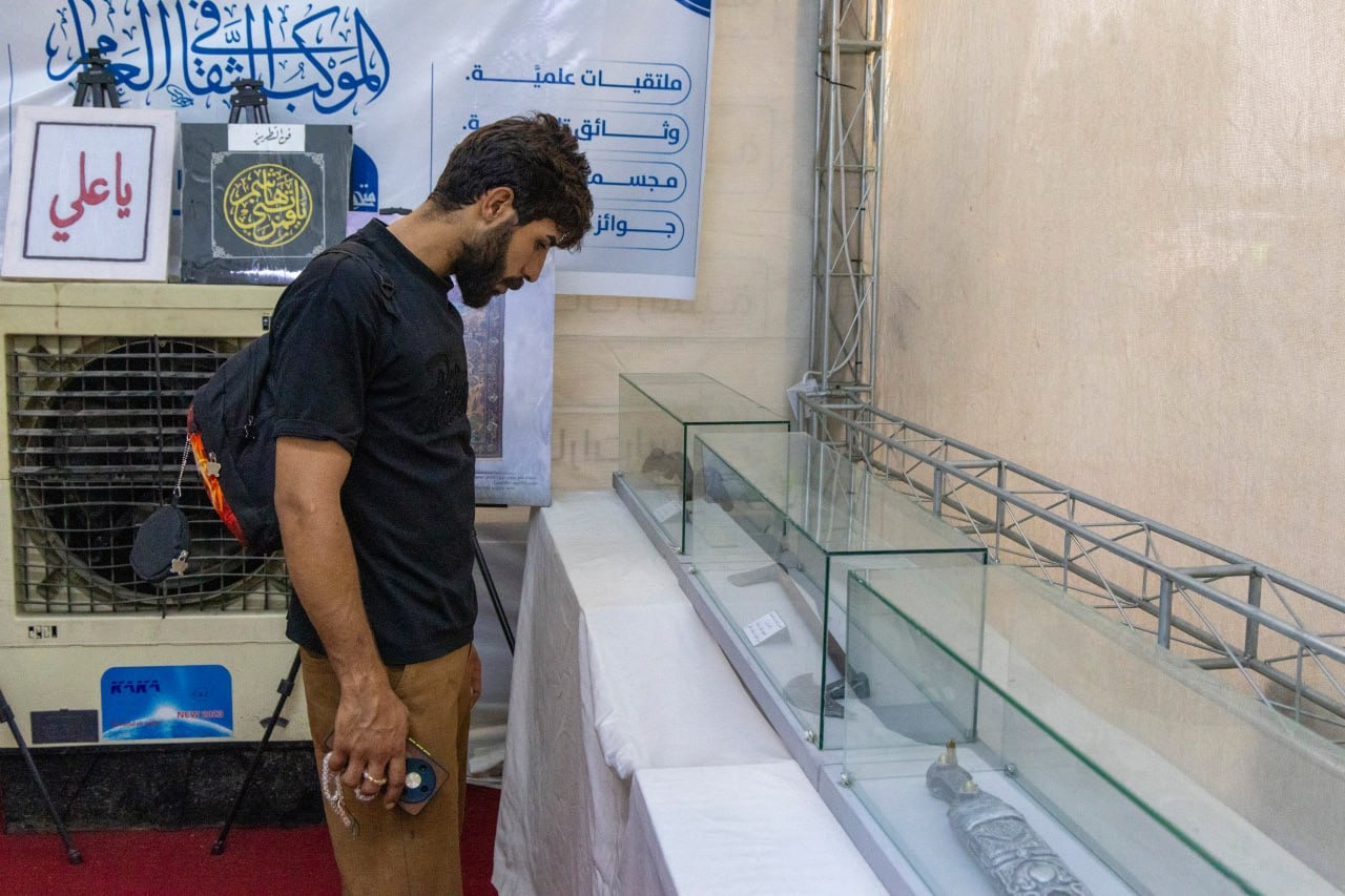 فيما أوضح السيد سيف يسري الحكيم، المرشد في محطة محور النجف : ( نحاول من خلال هذه المشاركة إبراز التراث الاسلامي عبر عرض مقتنيات مستنسخة مثل القرب والكشاكيل وأواني الماء، وكذلك الأسلحة البيضاء والنارية ).