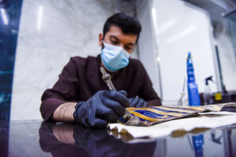 أعلن متحف الكفيل للنفائس والمخطوطات التابع للعتبة العباسية المقدسة عن وصول نسبة الإنجاز في برنامج ترميم وصيانة مقتنيات العتبة العسكرية المقدسة إلى 50%، وذلك بعد أن تسلّم مختبر المتحف أكثر من 145 قطعة نفيسة كوجبة اولى خضعت لأعمال الفحص والصيانة لديه.