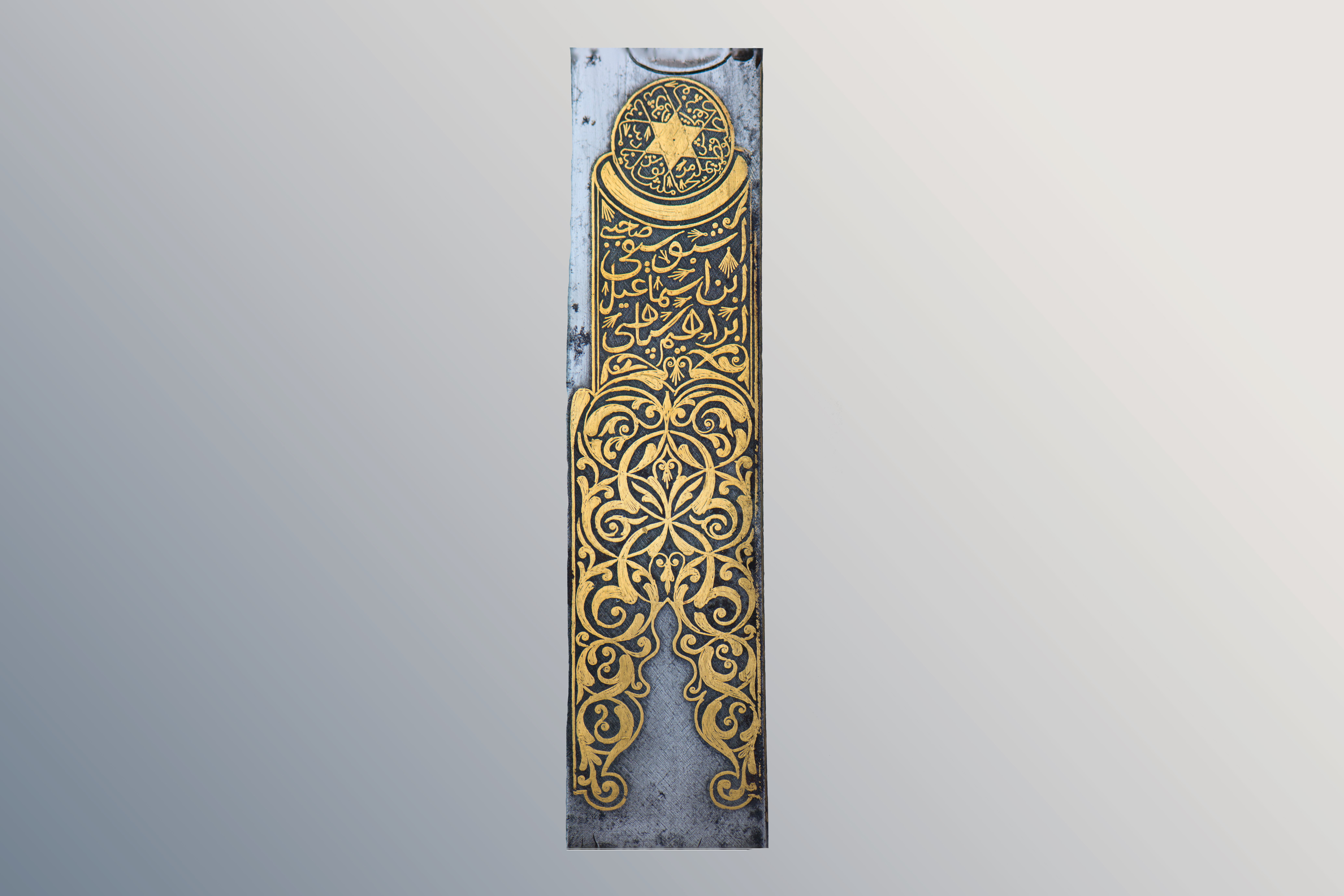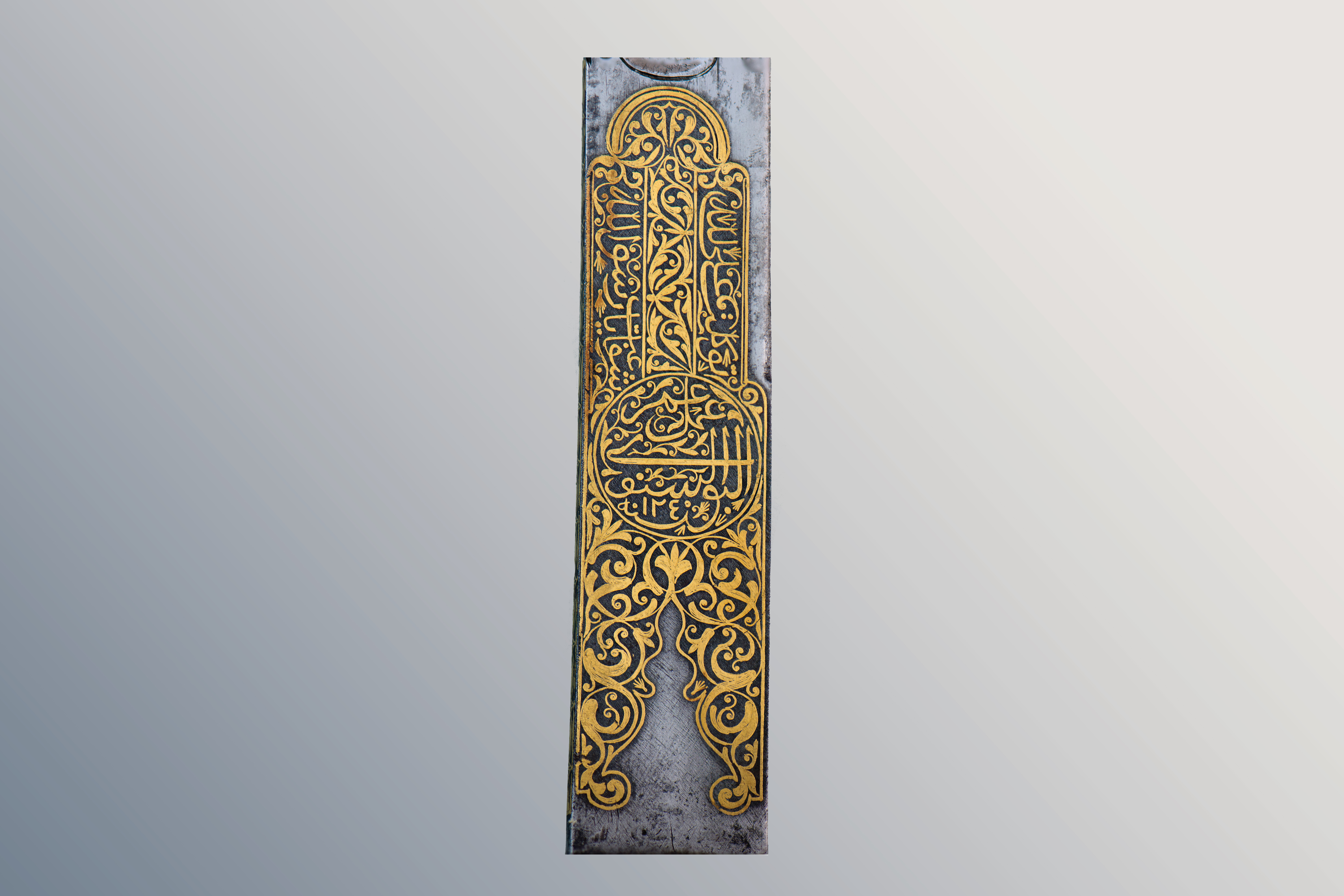وأضاف أنّ "السيف يحمل كتابة عثمانية تشير إلى أن مالكه هو من فرسان الجيش العثماني الثقيل، إلى جانب زخرفة بأسماء أصحاب الكهف السبعة كما يحمل الوجه الآخر عبارة (عمل عمر البوسني 1240هـ) الموافق تقريبًا لعام 1826م، ما يؤكد إضافة الزخرفة لاحقًا إلى نصل أقدم وهو أمر كان شائعًا لدى النخبة العسكرية، فضلًا عن احتوائه على عبارات دعائية".