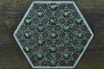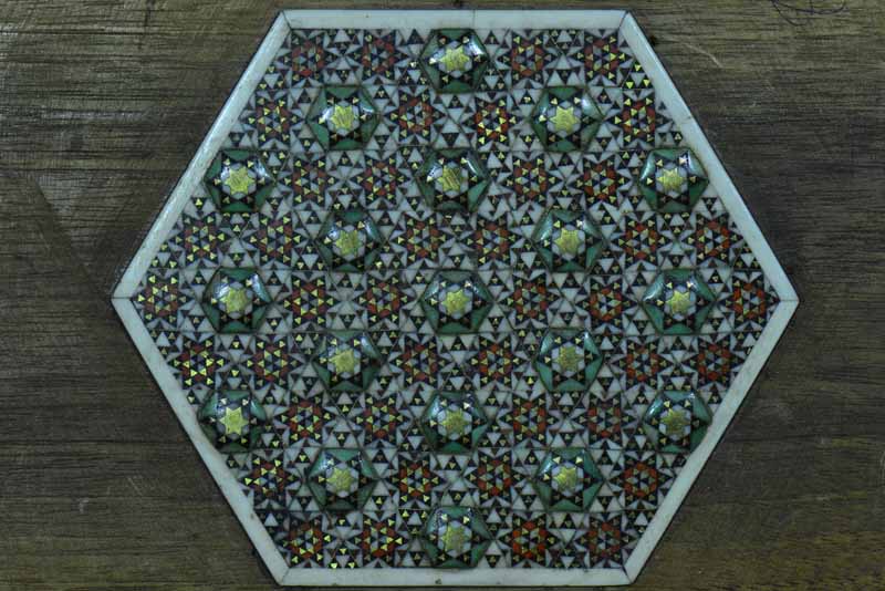 المرحلة الأولى:- التعريف على هذا الفنّ (الأرابيسك) بأنواعه مثل التطعيم بالصدف والنحت على الخشب وما الى ذلك.