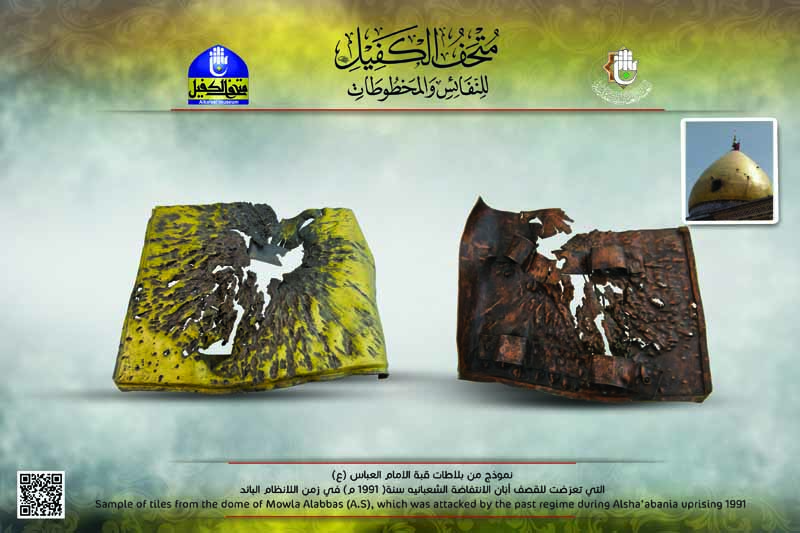 حيث تم عرض اللوحات الفوتوغرافية التي توضح بعض النفائس الموجودة في متحف الكفيل , منها السيوف والصولجانات والكشاكيل القديمة , والتي تعود الى حقب زمنية مختلفة , وصور ما تعرضت له العتبة العباسية المقدسة في عام 1991 م من تخريب وسرقة لممتلكاتها في زمن النظام البائد .