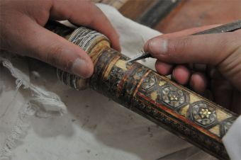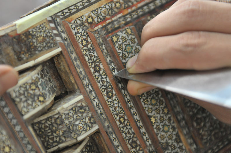 وكذلك تعلم كيفية ترميم وصيانة القطع الاثرية القديمة مثل الصولجانات ورحلات القرآن القديمة المتضررة , بمواد اصلية مثل (عظم الابل واخشاب متنوعة ومواد نحاسية) ش.م