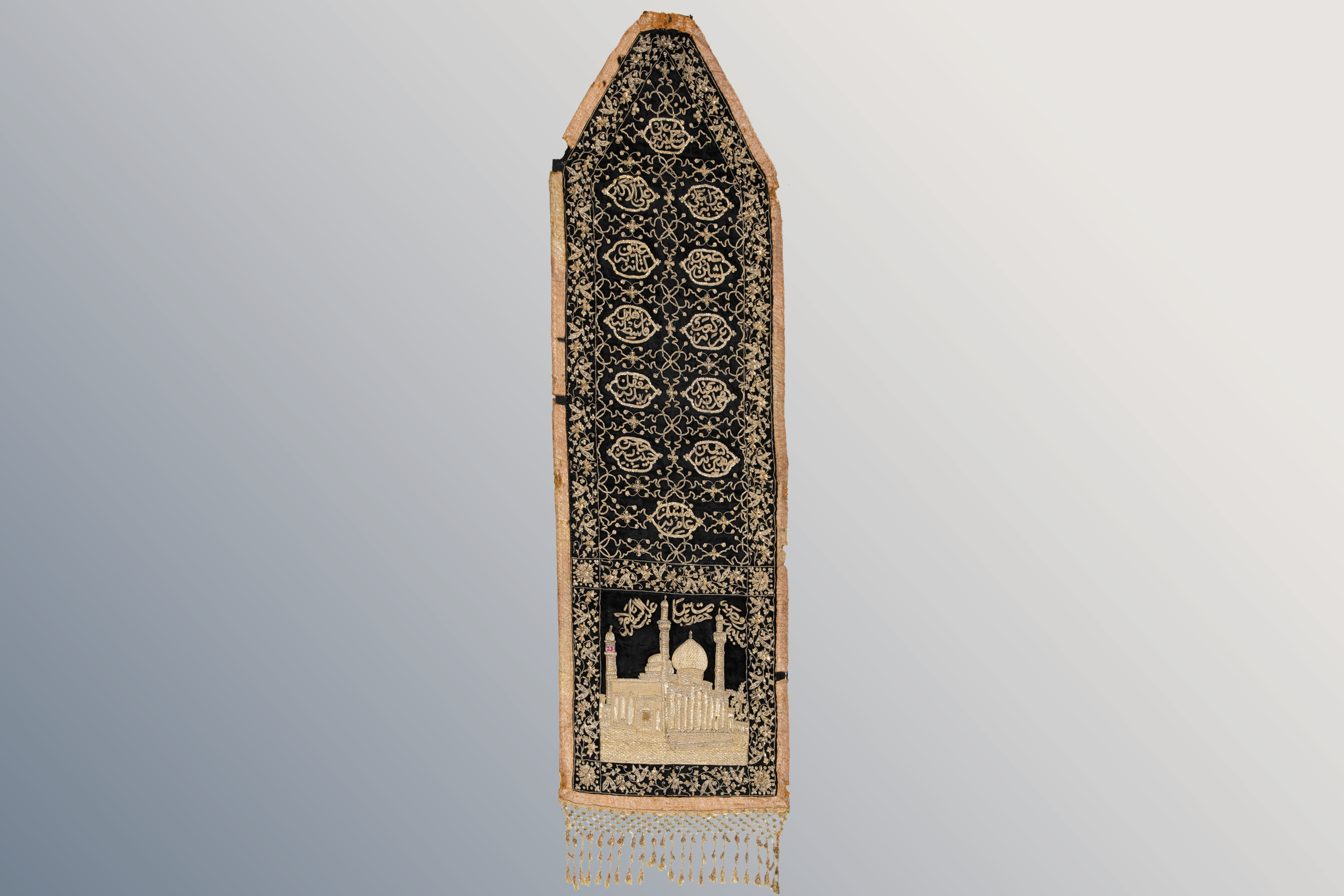 علم مصنوع من قماش القديفة و الخيوط المعدنية مطرز عليه نقوش وزخارف نباتية وإسلامية و كتابات منسوبة الى ابي عبد الله الحسين عليه السلام و بعض أهله و اصحابه المستشهدين في واقعة الطف و يوجد عليه رسم تشبيهي لمرقد أبي الفضل العباس ( عليه السلام ) كتب في اعلى الشكل ( شبيه روضة حضرت عباس عليه السلام )