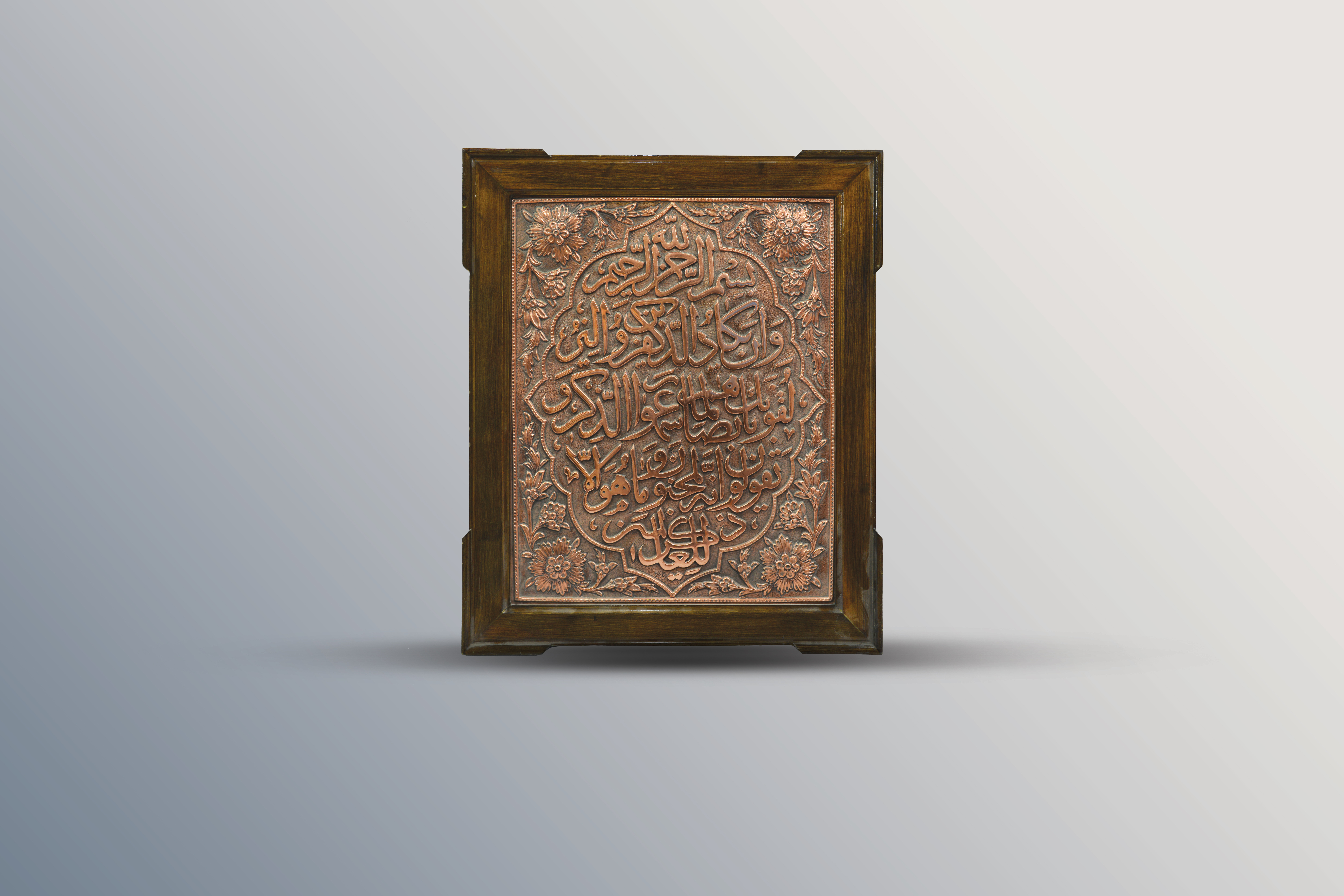 لوحة من النحاس الاحمر كتب فيها الاية الكريمة (وان يكاد ........