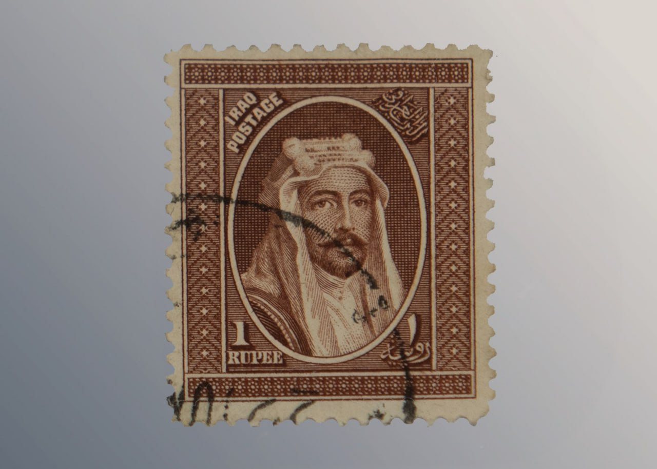 طابع بريدي فئة (1 روبية) صدر في العام 1923 ويحمل صورة الملك...